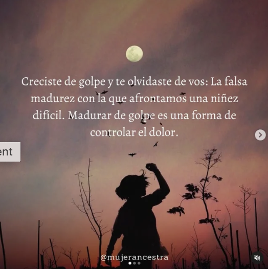 Cuando llegué a Mujer Ancestra la angustia apenas me dejaba respirar (la habia visto algunas veces en ig), y me contuvo desde el minuto uno. Mi proceso tuvo altos y bajos, es una montaña rusa me dijo ella una vez. Sigo trabajando en mí pero ya no soy esa q era un tiempo atrás. Río, lloro, entiendo y sano de la mano de esta gran mujer. Gracias @mujerancestra por ayudarme a estar donde estoy! ♥️